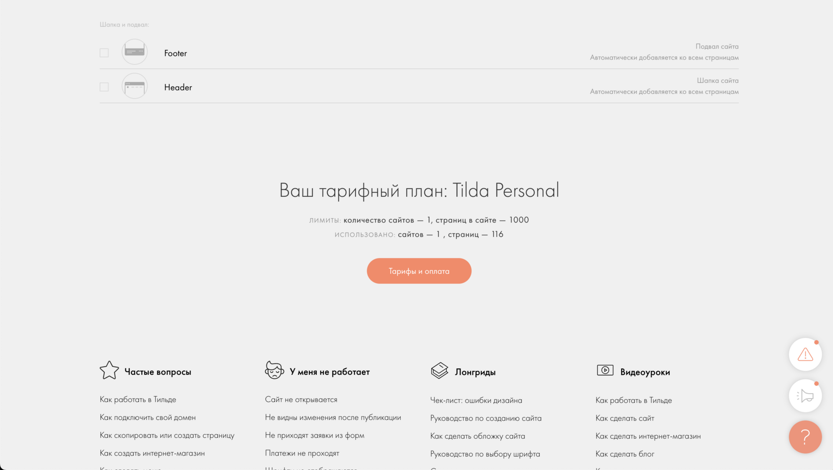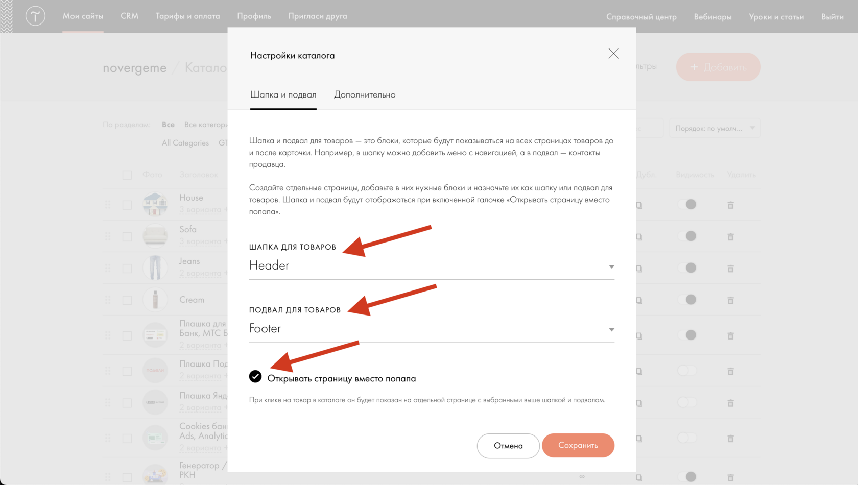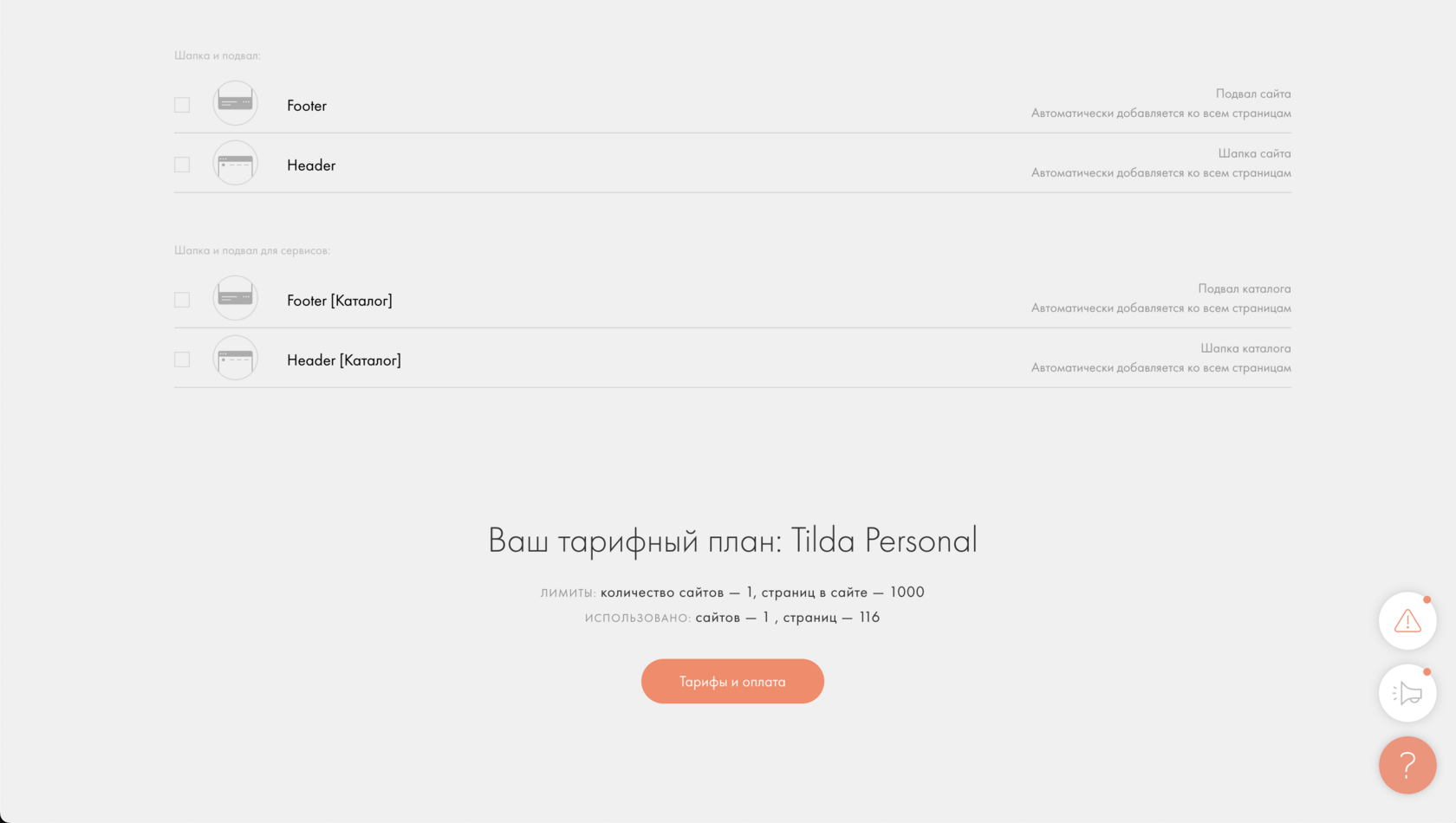 Если товары открываются как отдельные страницы, в Tilda могут появиться дополнительные страницы: Header для каталога и Footer для каталога (применяются только к карточкам товаров).